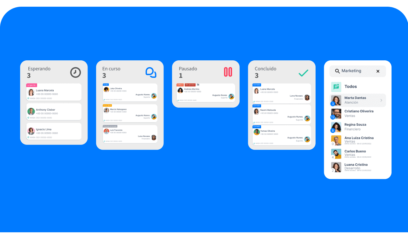 Gestioná múltiples chats en una sola pantalla. Visualizá los atendimientos con vista Kanban. Buscá en la base y optimizá tu flujo de trabajo.